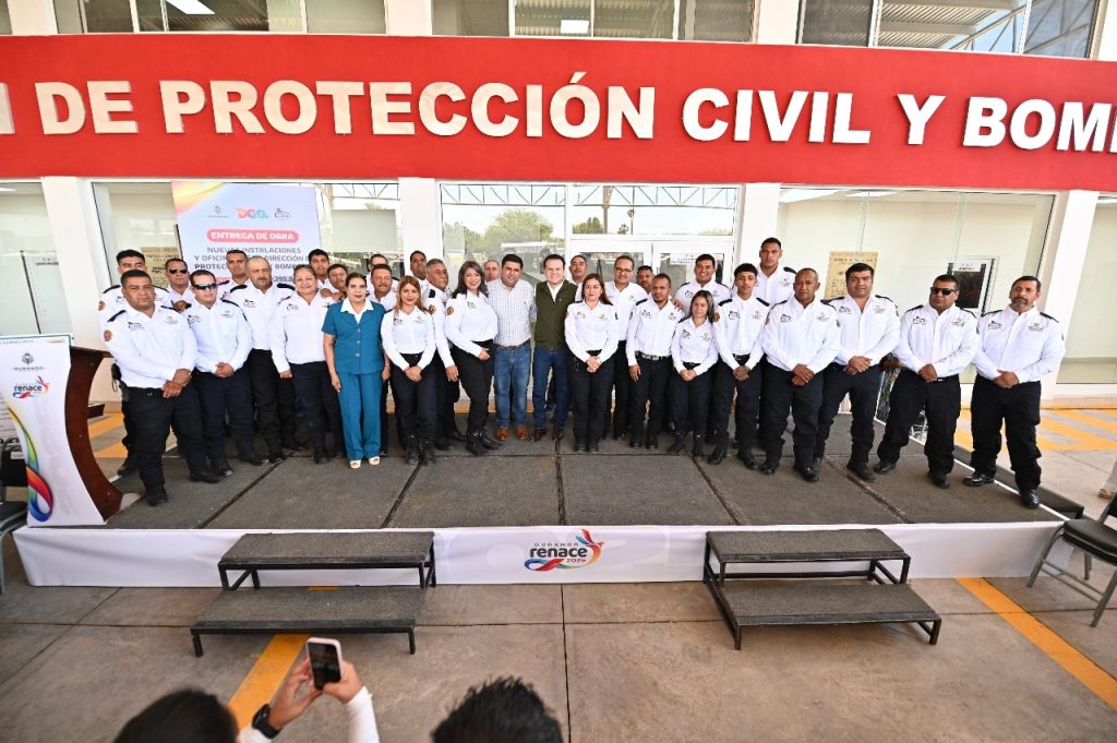 Lerdo, Dgo.- Tras la reciente entrega del nuevo edificio de Protección Civil y la Estación de Bomberos de Ciudad Lerdo, por parte del gobernador Esteban Villegas Villarreal y del alcalde Homero Martínez Cabrera, el personal hoy cuenta con instalaciones modernas, funcionales y equipadas para brindar una atención oportuna a la población, por ello, agradecieron el poder dignificar su labor y en la memoria de los compañeros que fallecieron.