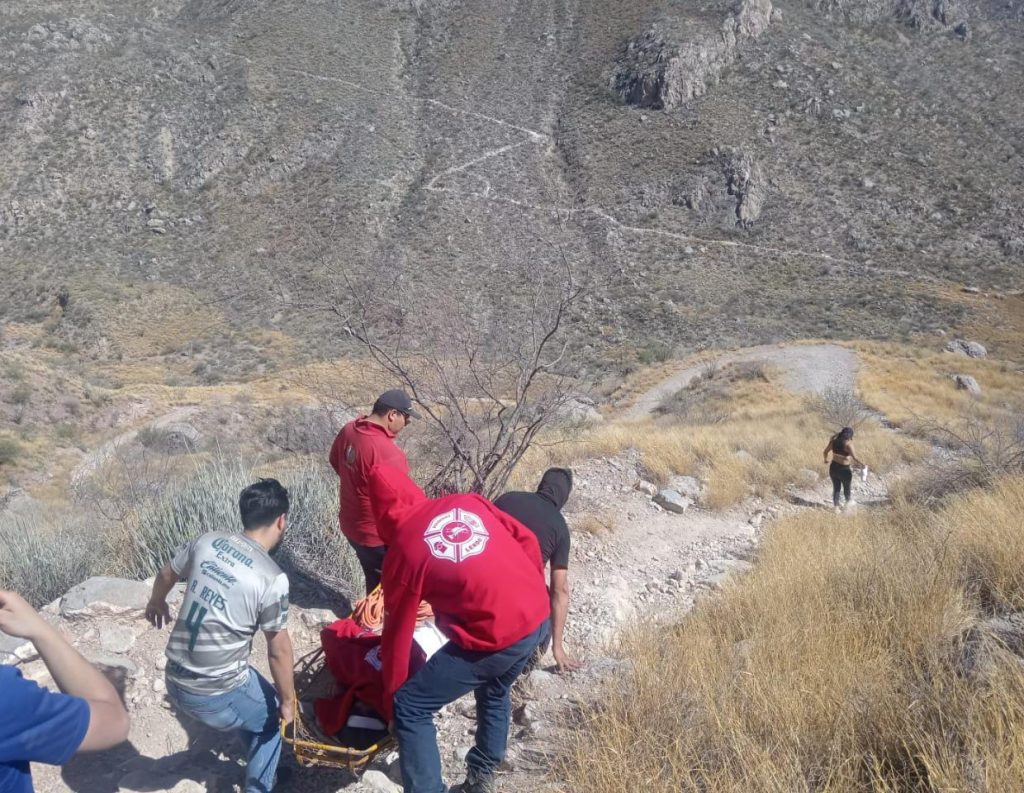 Miriam, de 22 años y originaria de Gómez Palacio, resbaló entre las rocas y sufrió una fractura. Tras recibir el reporte, elementos de PCyB acudieron al lugar y, tras una labor coordinada, lograron estabilizarla y descenderla en camilla rígida para su traslado a una clínica en la región. Este es el segundo caso de rescate en el último mes.