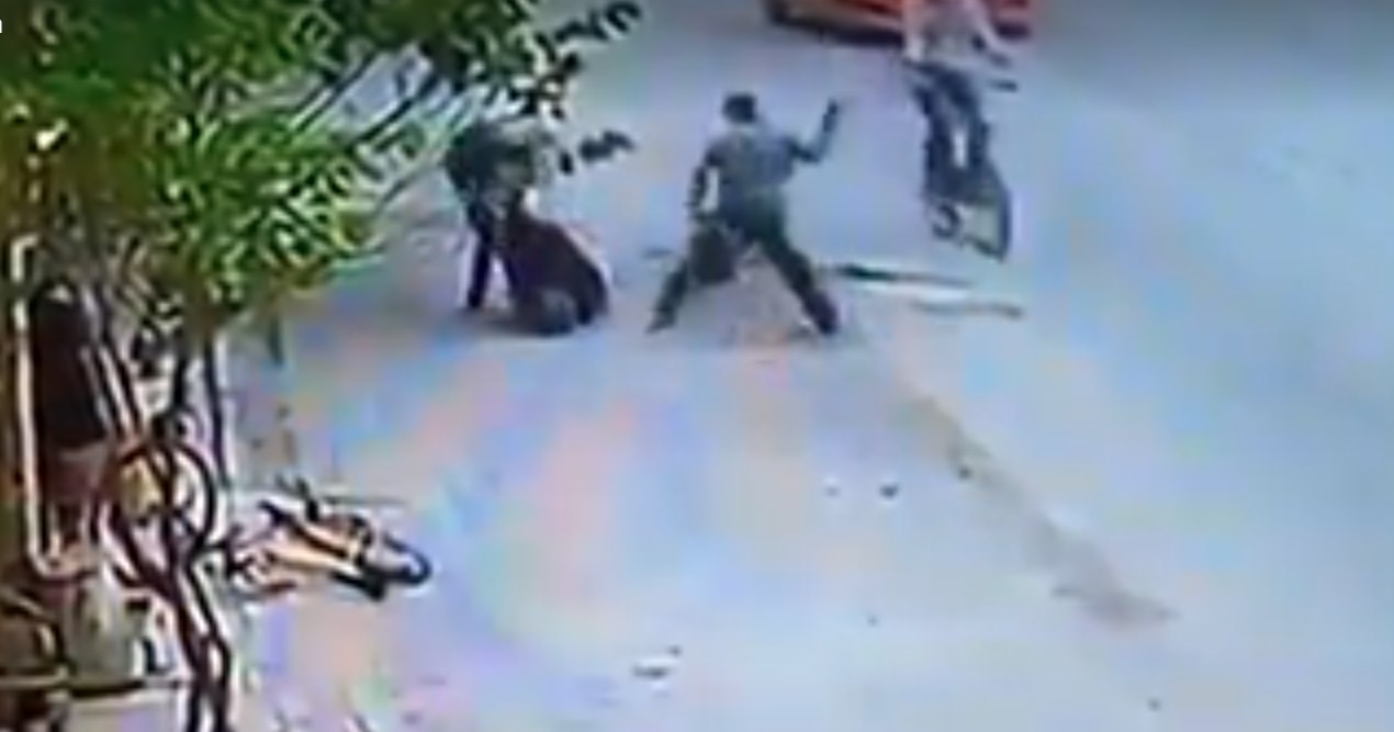 Esto sucedió en la calle 5 de mayo, donde estos individuos presuntamente intentaron asaltar una casa y varios negocios de una familia y como se puede ver en el video, golpearon a un trabajador con un bate de béisbol.