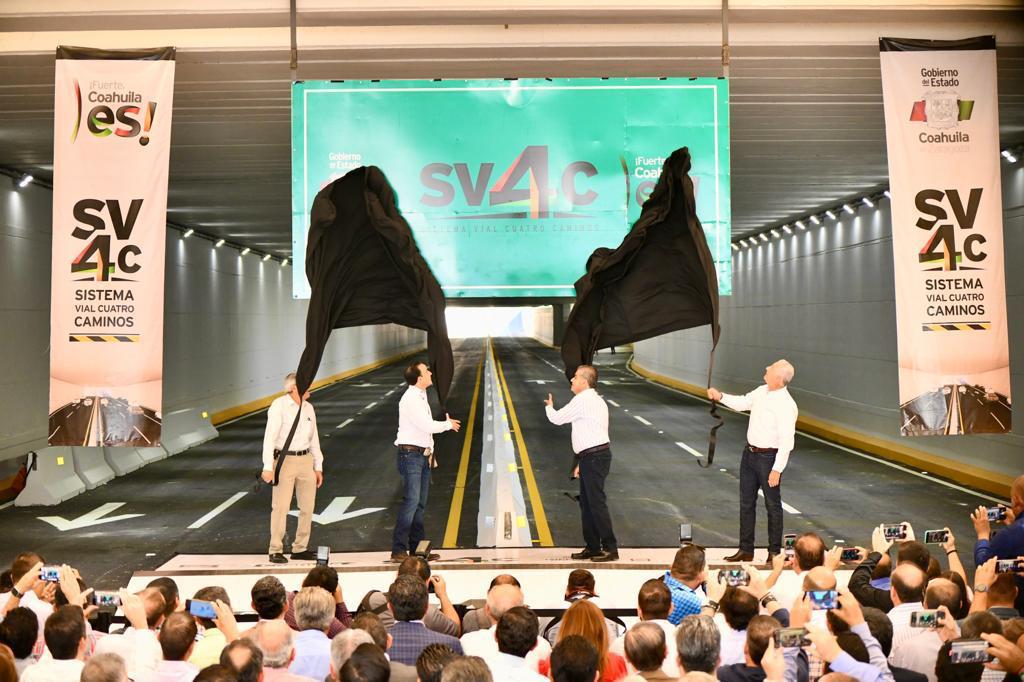 Con una inversión superior a los 500 millones de pesos, el alcalde Román Alberto Cepeda González, y el gobernador de Coahuila, Miguel Ángel Riquelme Solís, inauguraron la obra del Sistema Vial Cuatro Caminos que dará fluidez al tráfico vehicular que transita por el bulevar Independencia de Torreón.