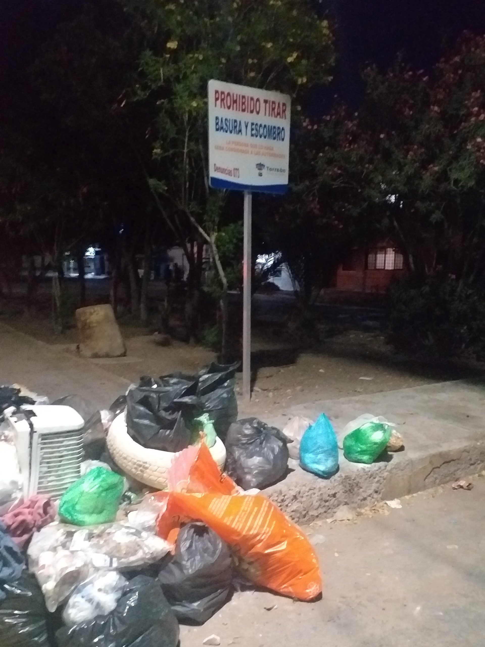 Esta mañana con una denuncia anónima a el whatsapp de redacción de Laguna prensa, vecinos de la colonia moctezuma, no han respetado el señalamiento de no tirar basura en la plaza que se encuentra en calle ixtapalapa y calzada Netzahualcóyotl .