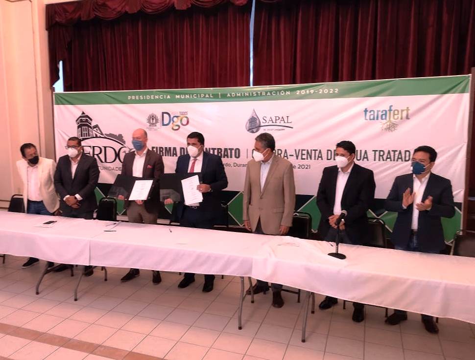 El día de hoy a las 10:30 de la mañana se realizó un evento en la presidencia de Lerdo con motivo de la firma del convenio de compra-venta de agua tratada entre el municipio y la iniciativa privada.