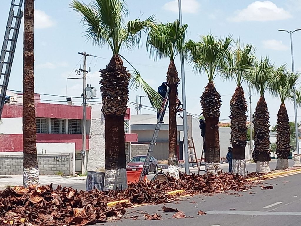 Cuando se trabaja en las palmas como las que se ubican sobre el Paseo Independencia, se podan, se les retira la corteza y posteriormente se les pinta con una sustancia que no es dañina y previene la propagación de plagas, explicó el funcionario.
