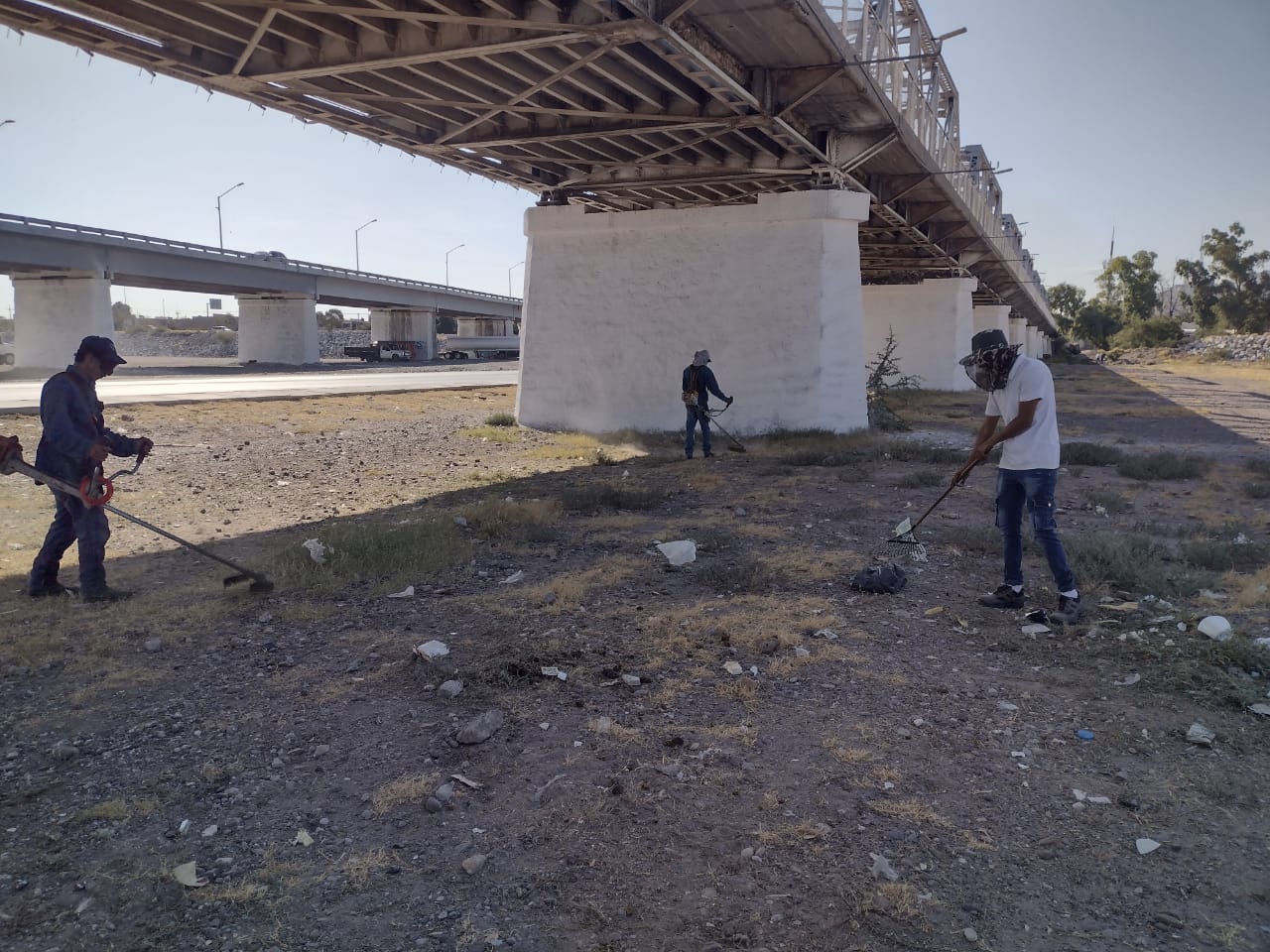 Fernando Díaz Femath, titular de la Dirección en el municipio, señaló que estos trabajos de mantenimiento consistieron en desmalezado de jardineras y camellones, pintado de cordonería, poda y limpieza profunda en ambos puentes y en la parte debajo de estos, es decir en el lecho seco del Nazas.