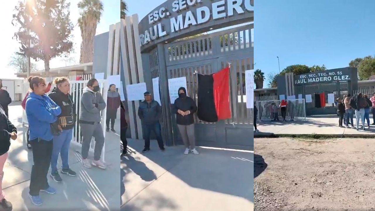 Desde temprana hora de este lunes, varios padres de familia se han reunido en las afueras de la secundaria, tomándola la institución, pidiendo el despido de dos maestros por el presunto acoso que han realizado a varias alumnas del plantel, asi como también de la trabajadora social, debido a que no reporto el problema hacia más arriba.