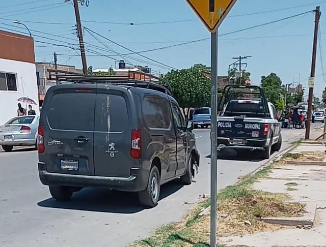 Hoy al rededor de las 11:15 am, en Gómez Palacio, en el cruce de las calles Madero y De la Llave, justo en frente de la construcción del nuevo fuerte de la Guardia Nacional, se registró un choque entre una camioneta color negro tipo Van de la marca Renault y una patrulla de la Policía Municipal.
