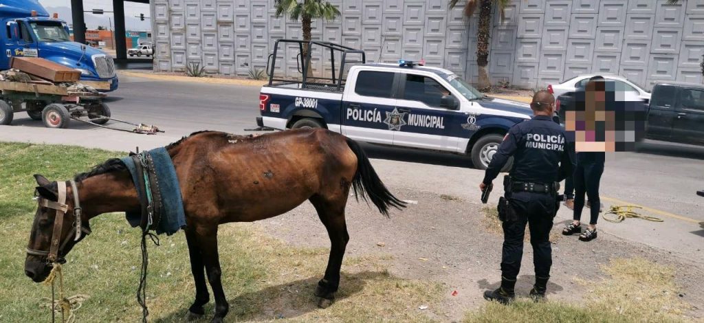 Personal de la Dirección de Seguridad y Protección Ciudadana del municipio de Gómez Palacio, y del departamento de Control y Protección Animal, rescataron el día de hoy un caballo que era maltratado en pleno boulevard Ejército Mexicano por dos jóvenes que viajaban en un carromato.