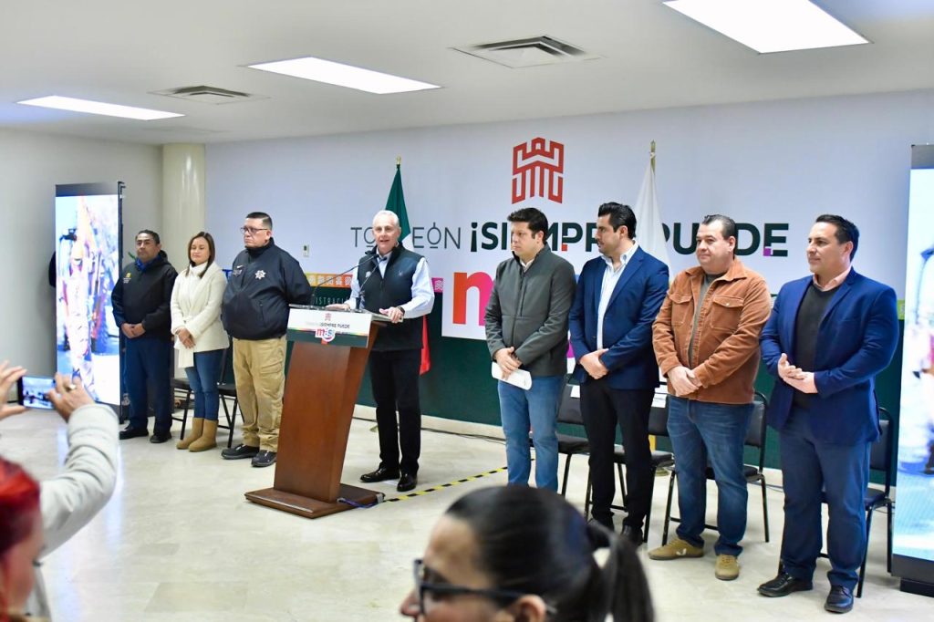 Estuvieron presentes también: José Elías Ganem Guerrero, Secretario del Ayuntamiento de Torreón; Fernando Ariel Martínez Mendoza, Jefe de Gabinete; Comisario César Antonio Perales Esparza, Director General de Seguridad Pública Municipal; Marlene Martínez Valdés, Directora DIF Torreón; Héctor Iván Estrada Baca, Director General de Desarrollo Social; Jorge Luis Juárez Llanas, Director de Protección Civil y Bomberos; Raúl Alejandro Garza del Valle, Director de Atención Ciudadana.