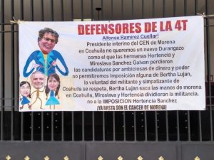 El día de hoy un grupo de personas se posicionaron en las afueras del Palacio Federal de Torreón, realizando una huelga de hambre en modo de protesta contra la imposición de Hortencia Sánchez Galván como secretaria responsable del estado del Coahuila de parte de Alfonso Ramírez Cuellar y no se retirarán de ahí hasta que sean canceladas dichas imposiciones. Los hombres comentan estar en contra debido a que las hermanas Hortencia y Miroslava Sánchez Galván, se han aprovechado de su poder y en las próximas elecciones del CEN del partido…