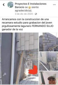 A la redacción de Laguna Prensa llegó la denuncia del ganador de La Voz TV Azteca 2020 el lagunero Fernando Sujo en la cual comenta contrató a la constructora local Proyectos e Instalaciones Barocio para que realizaran el proyecto de un estudio de grabación que como comenta el joven sería para continuar con su proyecto musical.